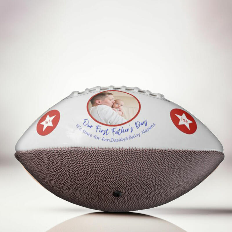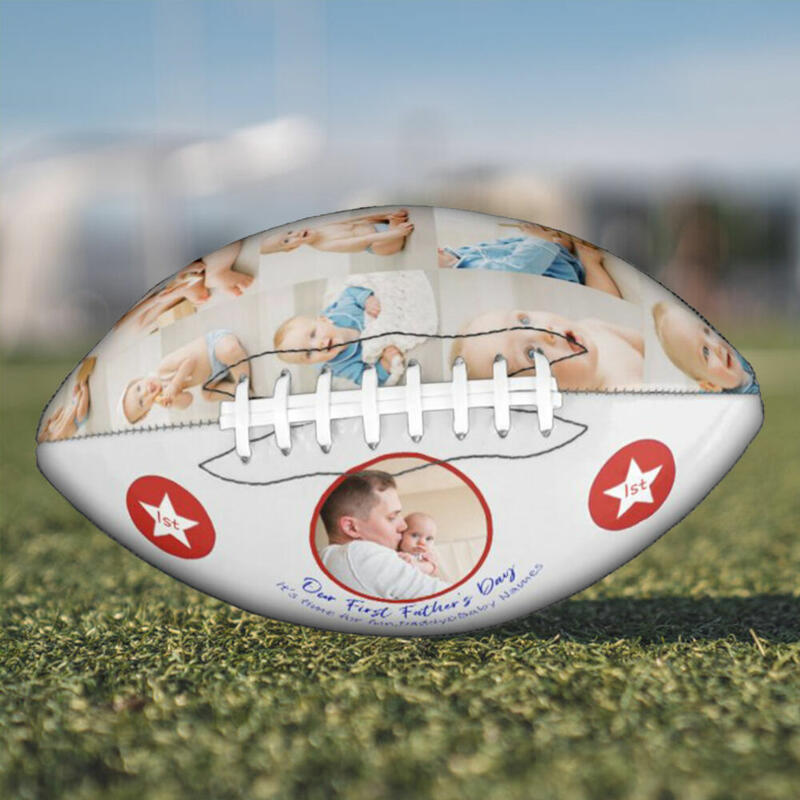 Personalisierter Fußball mit Babyfotos als Geschenk zum ersten Vatertag für den neuen Papa