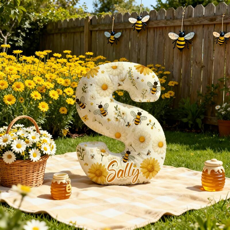 Personalized 3D Letter Pillows with Bee and Floral Prints Warm Gift for Mother's Day