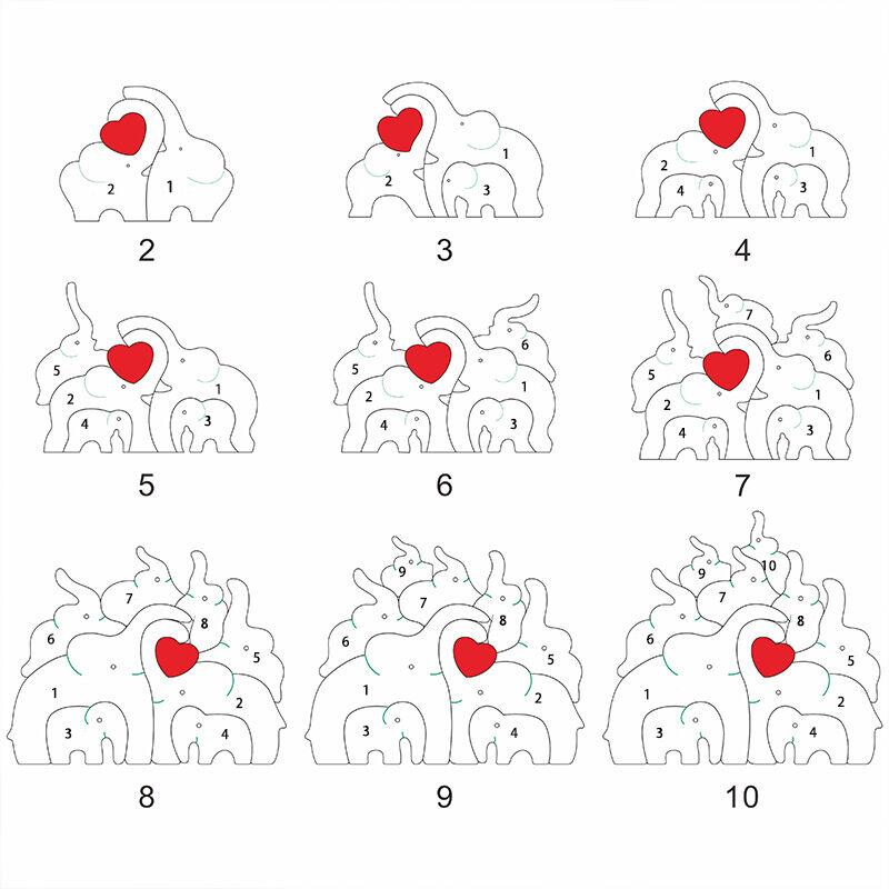 Personalisiertes 3D gedrucktes Elefanten Familienpuzzle Warmes Weihnachtsgeschenk