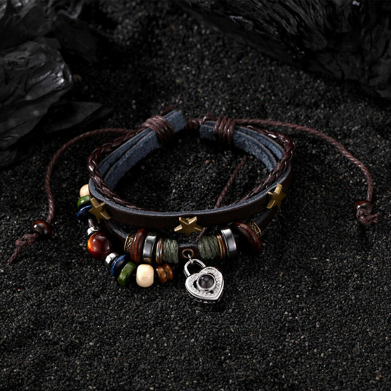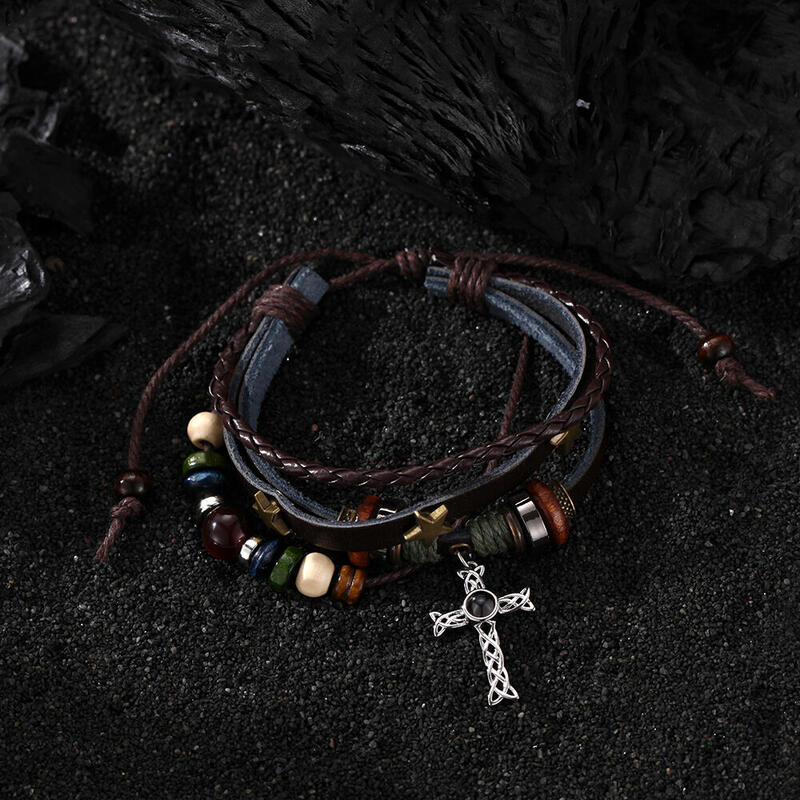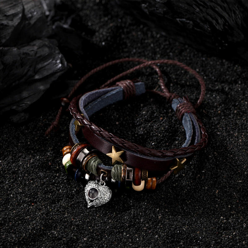 Personalisiertes geflochtene Schnur Riemen Perlen Projektion Armband Geschenk für Papa