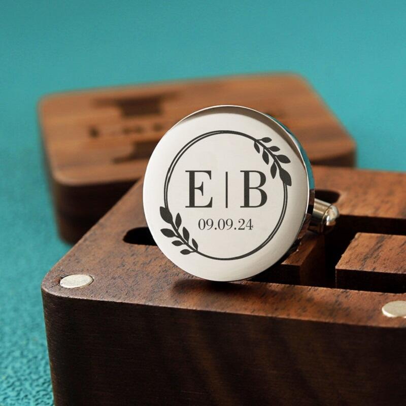 Personalisierte Manschettenknopf Paar Initialen Name Kranz Design Wunderbares Geschenk zum Jahrestag für ihn