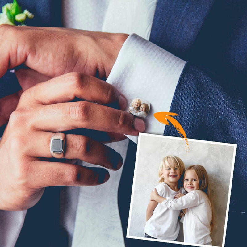 Personalisierter quadratischer Manschettenknopf Eigenes Fotodesign Sinnvolles einzigartiges Geschenk für Ihn Vater
