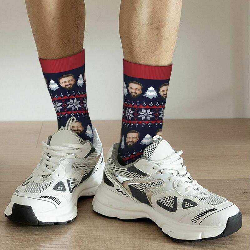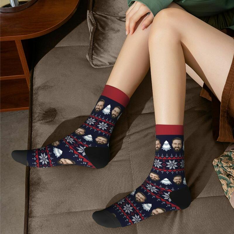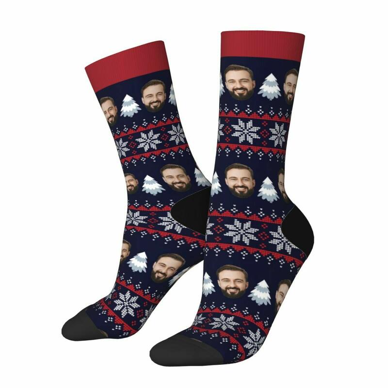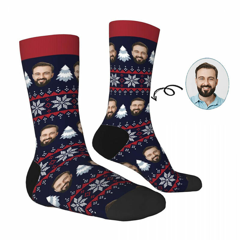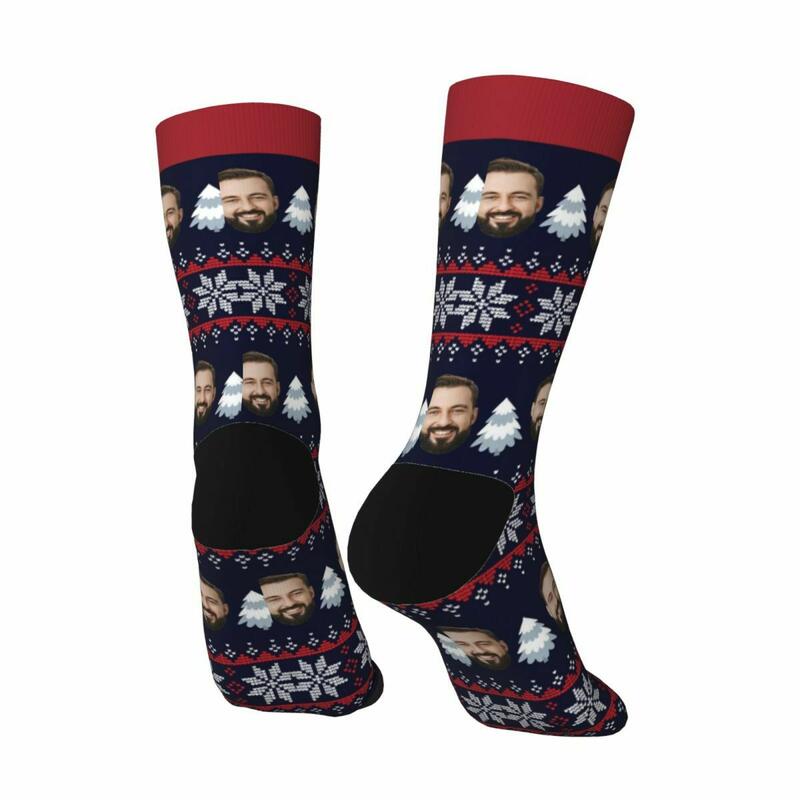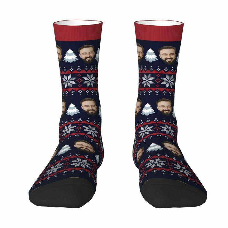 Personalisierte Gesichtsstrümpfe mit Weißem Baum und Schneeflocken-Muster Männer-Strümpfe für Weihnachten