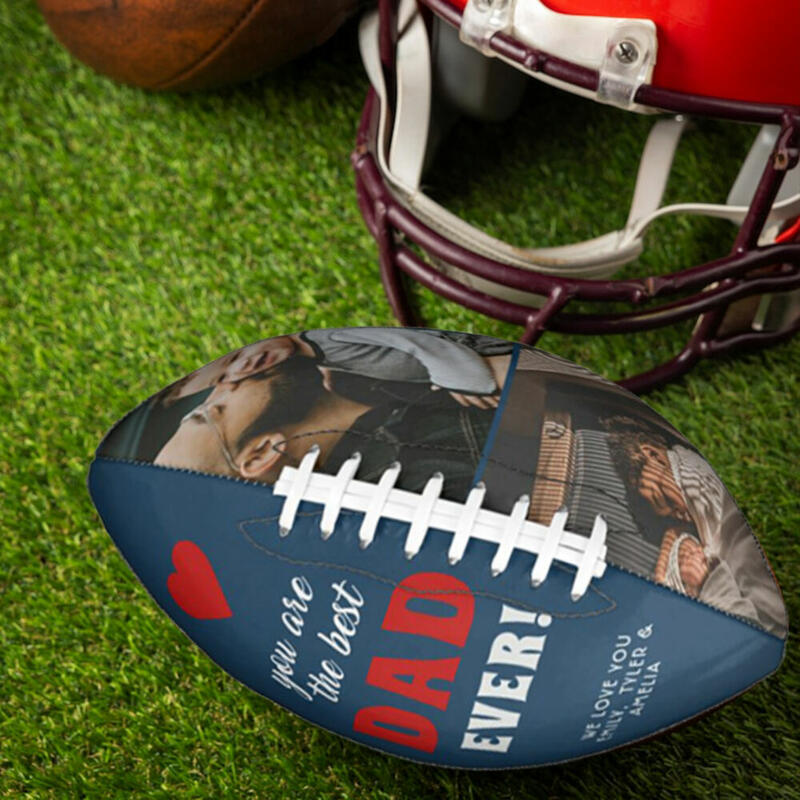 Personalisiertes Rugby mit roten Herzen als Geschenk für Papa