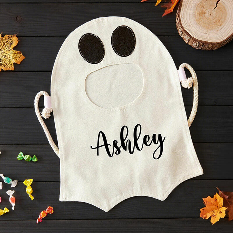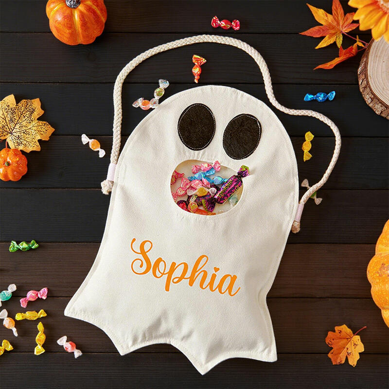 Personalisierte Geister-Süßigkeitentasche Individuell gestaltete Halloween-Trick-or-Treat-Tasche mit dem Namen des Kindes Geschenk für Kinder