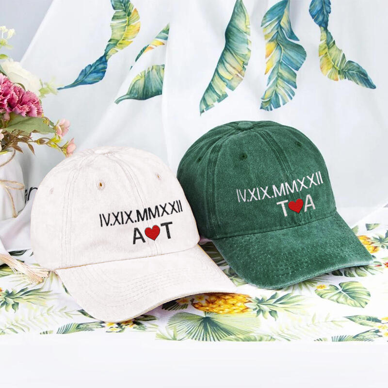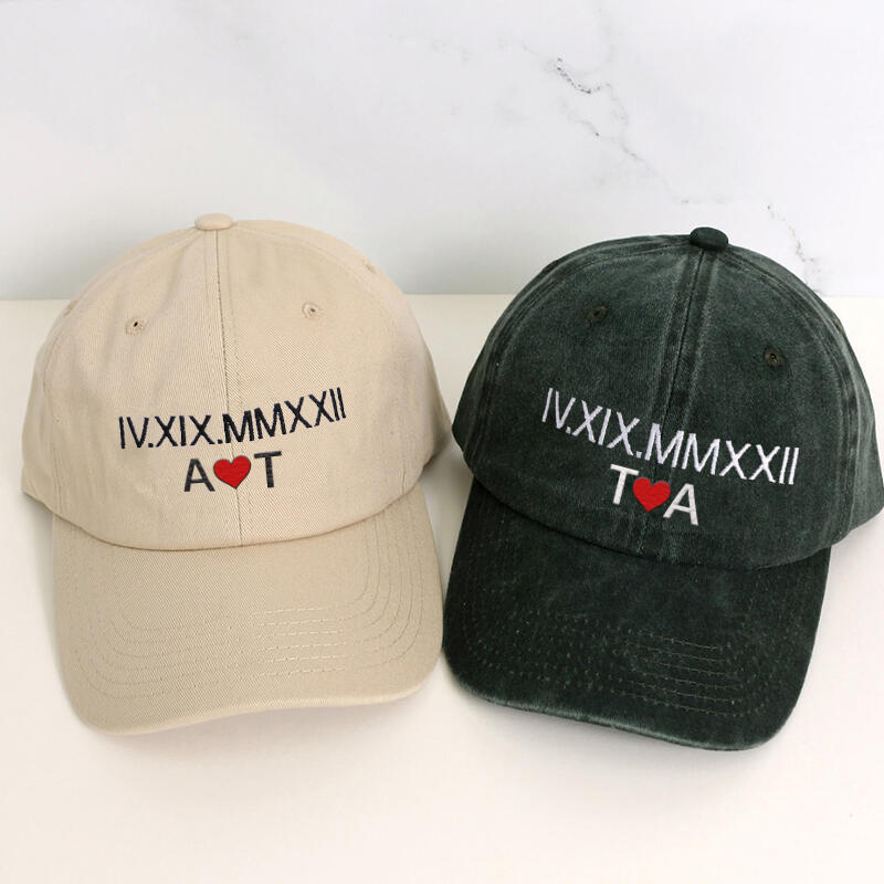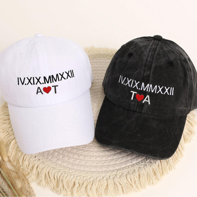 Personalisiertes Hut Individuell bestickt Römisch-numerale Datum und Buchstaben Einzigartiges Jahrestaggeschenk für die Liebenden
