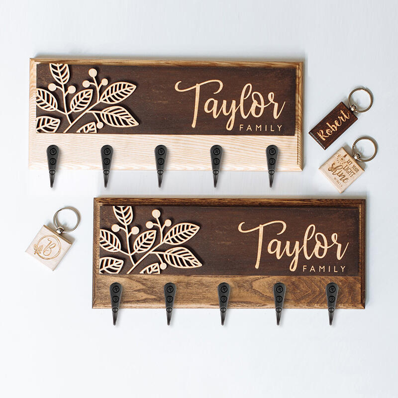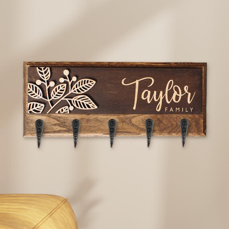 Personalisierter Schlüsselhaken Blumen mit Gravur Individuelles Nachnamendesign Elegantes Deko-Geschenk für die Familie