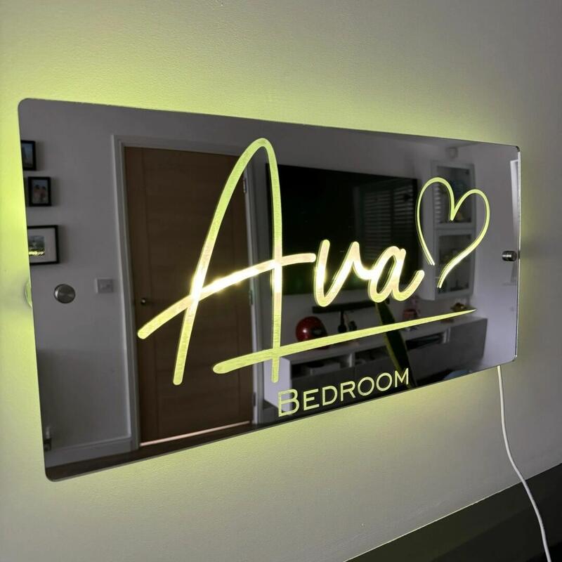 Personalisierte Spiegel Lampe mit Namen und Liebe Muster einfaches Geschenk für Familie