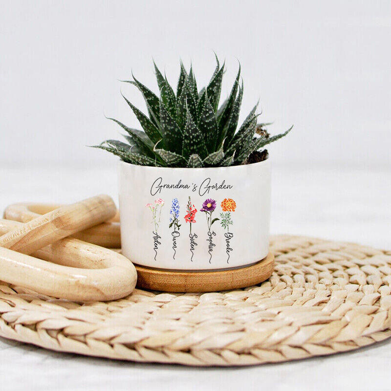 Personalisierter Blumentopf mit individuellem Namen und Blumen Stilvolles Geschenk zum Muttertag