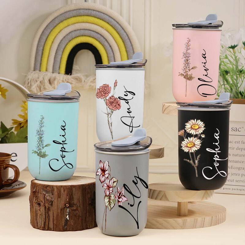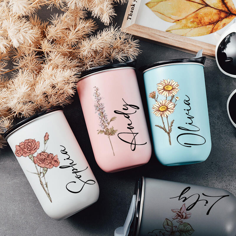 Personalisierter Name Wein Tumbler Becher mit Deckel Custom Birthflower Pattern Bestes Geschenk für die liebe Mama