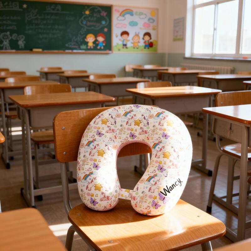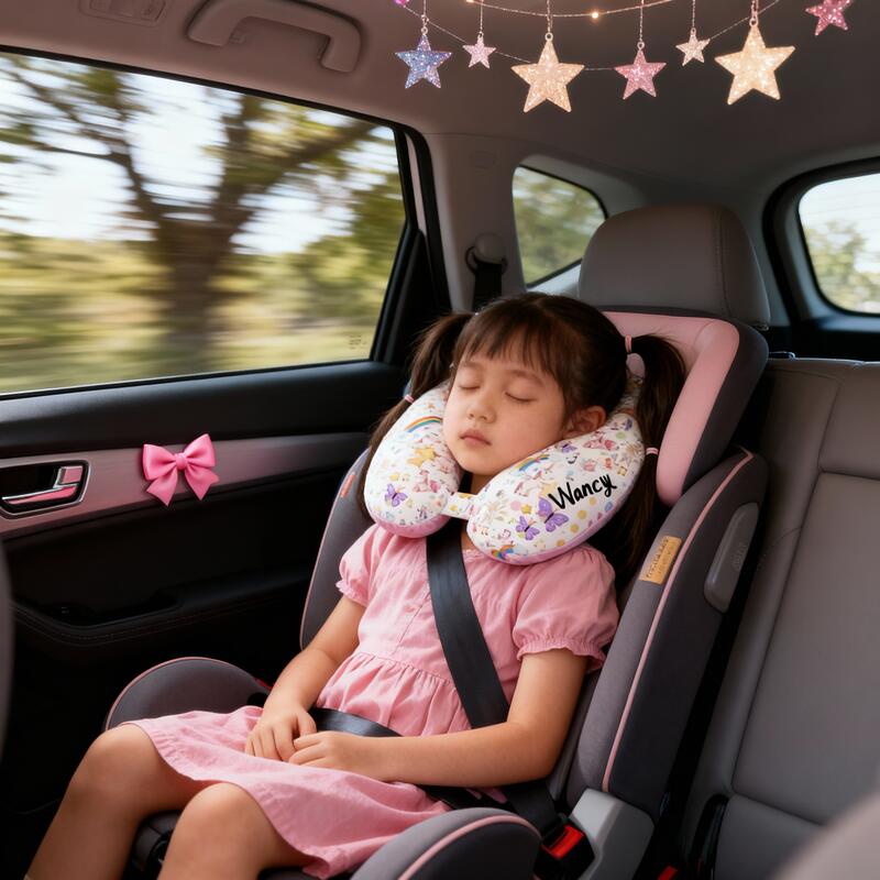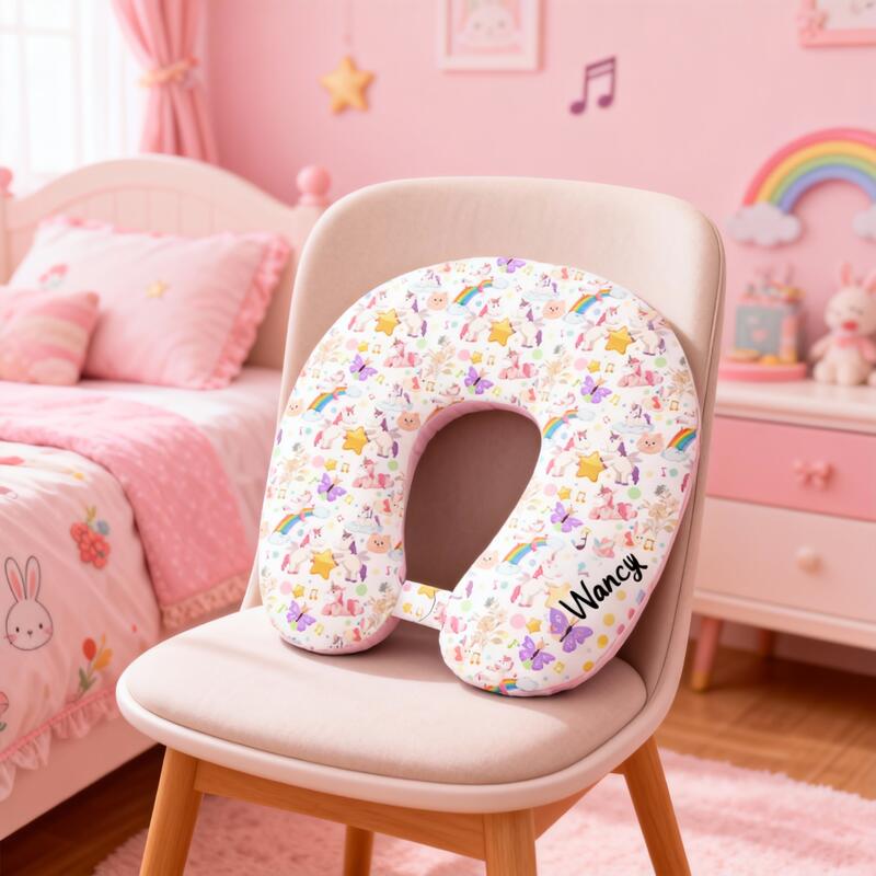 Personalisiertes Nackenkissen für Reisen mit Regenbogen-Einhorn-Motiv individuell mit Namen gestaltbar Reisegeschenk für Mädchen