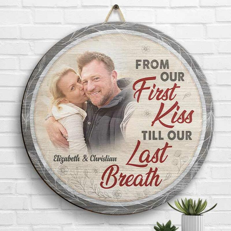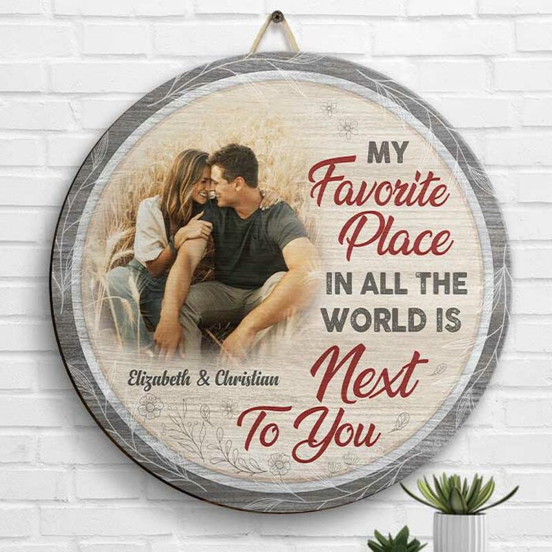 Personalisiertes Runder-Bild-Rahmen Mit Warmen Worten Und Süßem Geschenk Für Das Paar
