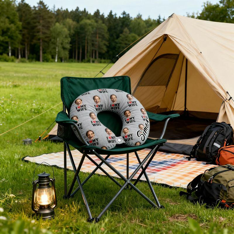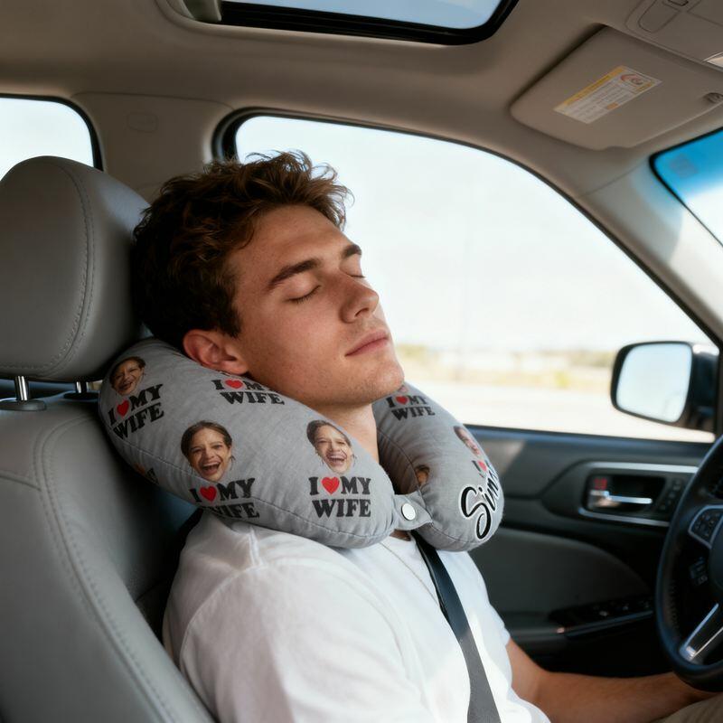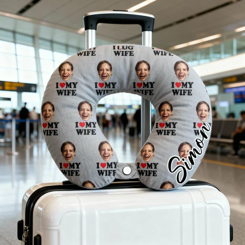 Personalisiertes Nackenkissen für Reisen mit individuellem Kopf-Foto-Design Reisegeschenk für Paare