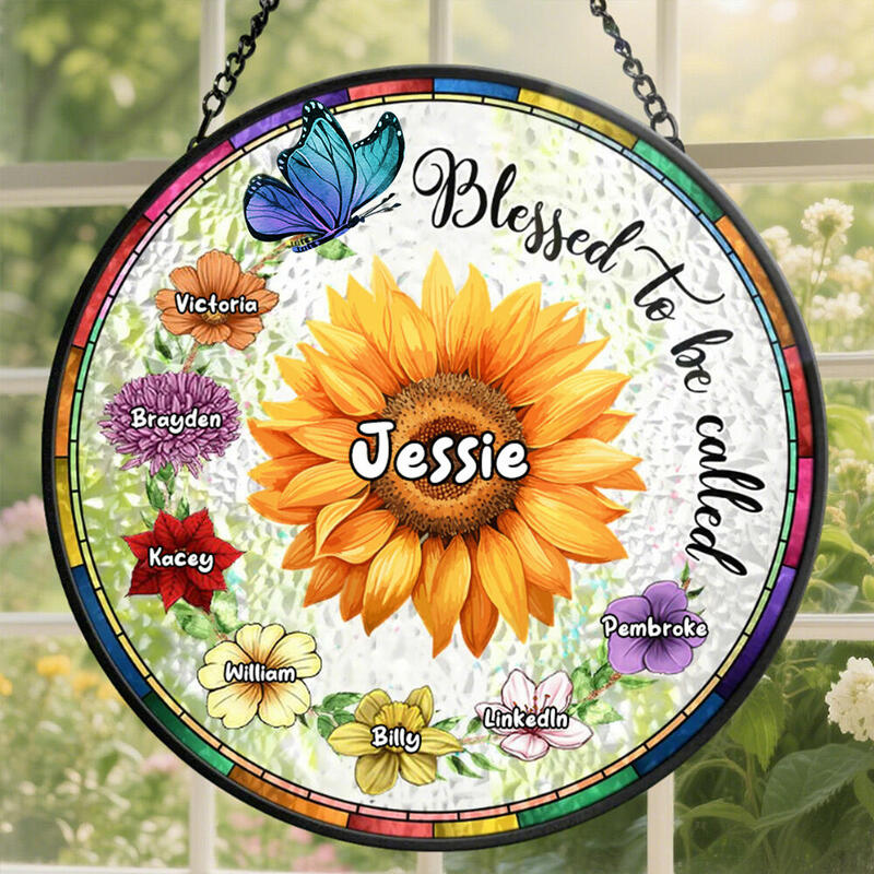 Personalisierte Fenster hängenden Sonnenfänger Buntglas Deko Geburt Blumen für Sie